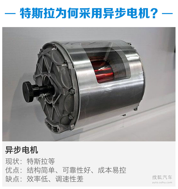 相比于永磁同步電機(jī),異步電機(jī)的優(yōu)點(diǎn)是成本低,工藝簡(jiǎn)單、運(yùn)行可靠耐用、維修方便,而且能忍受大幅度的工作溫度變化。反之,溫度大幅變化會(huì)損壞永磁同步電動(dòng)機(jī)。盡管在重量和體積方面,異步電動(dòng)機(jī)并不占優(yōu)勢(shì),但其轉(zhuǎn)速范圍廣泛以及高達(dá)20000rpm左右的峰值轉(zhuǎn)速,即使不匹配二級(jí)差速器也能夠滿足該級(jí)別車型高速巡航的轉(zhuǎn)速需求,至于重量對(duì)續(xù)航里程的影響,高能量密度的18650電池能夠“掩蓋”電機(jī)重量的劣勢(shì)。此外,異步電機(jī)穩(wěn)定性也是被特斯拉選用的重要原因。