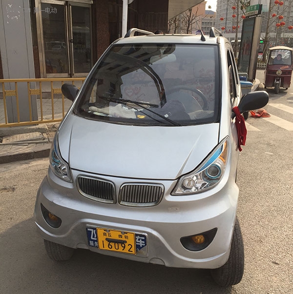 2月20日,電動網微電調研小團隊來到了商丘。記者剛出商丘火車站就看到車身標有“交通執法”的巡邏車,車身后面還有“益高電動車”的品牌標識。幾步之遠,還有一輛掛有“商丘.四輪”黃色車牌的低速電動車停放在路邊。商丘對低速電動車普遍進行掛牌管理嗎?個人如何申請牌照?政府又是如何管理低速電動車上牌上路的?記者隨后走訪了商丘梁園區、睢陽區等社區,并對當地交警進行了采訪。