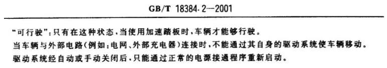 (2)當(dāng)車輛被物理連接到外部電源進(jìn)行充電時,應(yīng)不能通過自身的驅(qū)動系統(tǒng)移動。參見《GBT 18384.2-2001 電動汽車 安全要求 第2部分:功能安全和故障防護(hù)》。