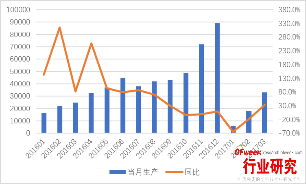自2017年1月1日正式實施新補貼政策,并且重建《新能源汽車推廣應用推薦車型目錄》開始,我國新能源汽車產業進入政策調整期,經過三個月推進,從月度走勢圖上看,我國新能源汽車產銷情況已經逐漸回暖,前三個月的產量呈現穩步放量。