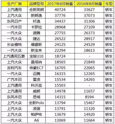 轎車銷量排名