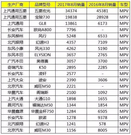 MPV銷量排名