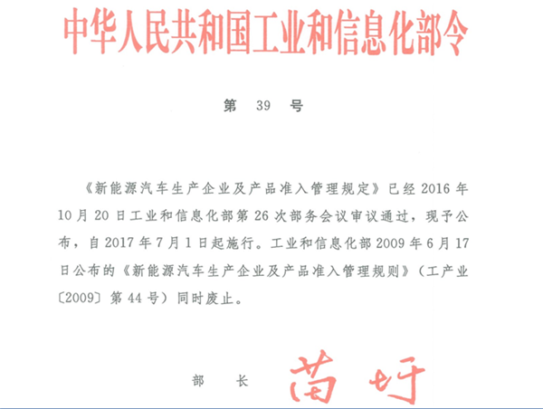 事實上,本次《通知》發布的依據是工信部2017年1月17日發布的《新能源汽車生產企業及產品準入管理規定》。其中,第二十三條明確指出:“對于停止生產新能源汽車產品12個月及以上的新能源汽車生產企業,工業和信息化部予以特別公示。經特別公示的新能源汽車生產企業在恢復生產之前,工業和信息化部應當對其保持《準入審查要求》的情況進行核查。”