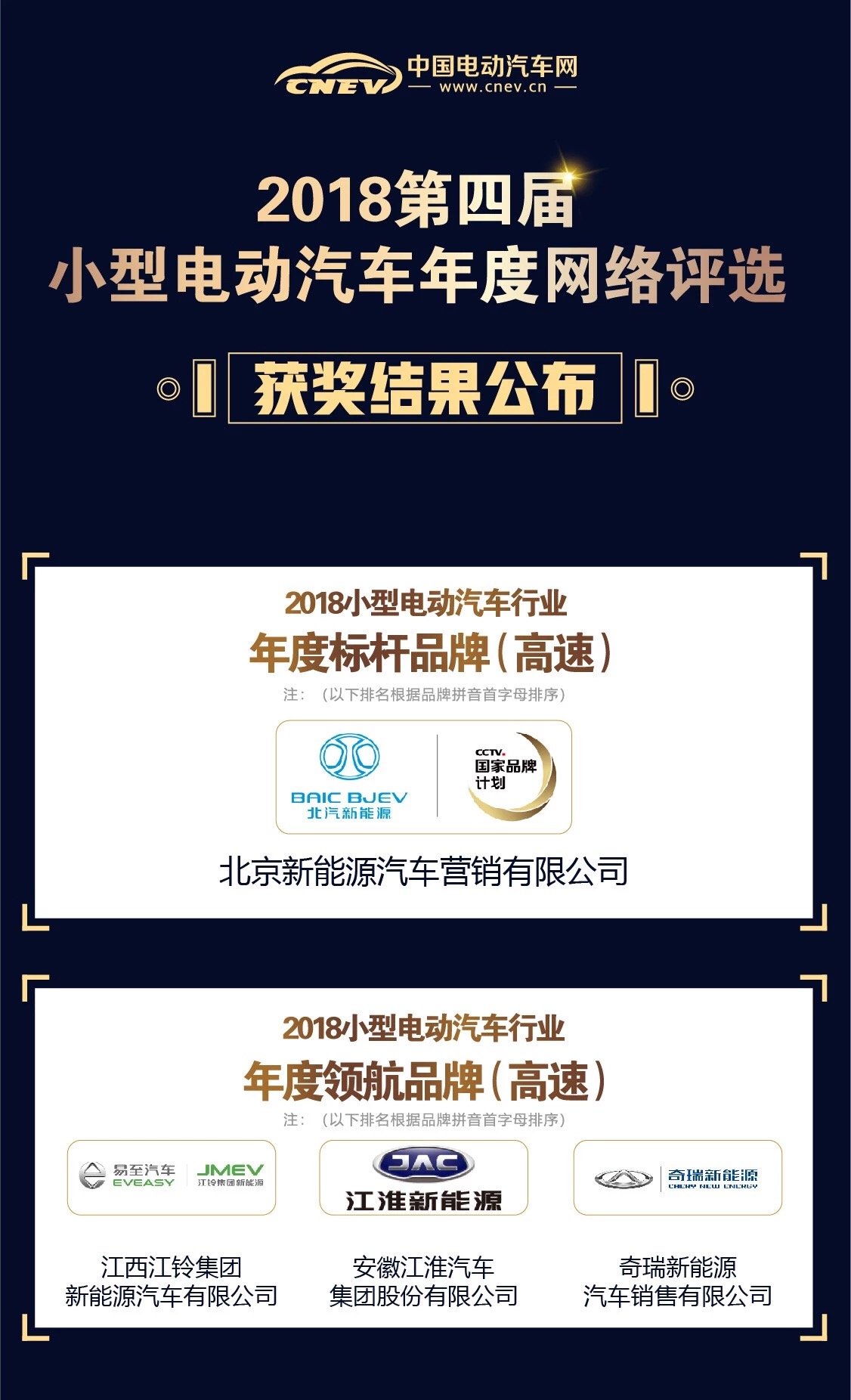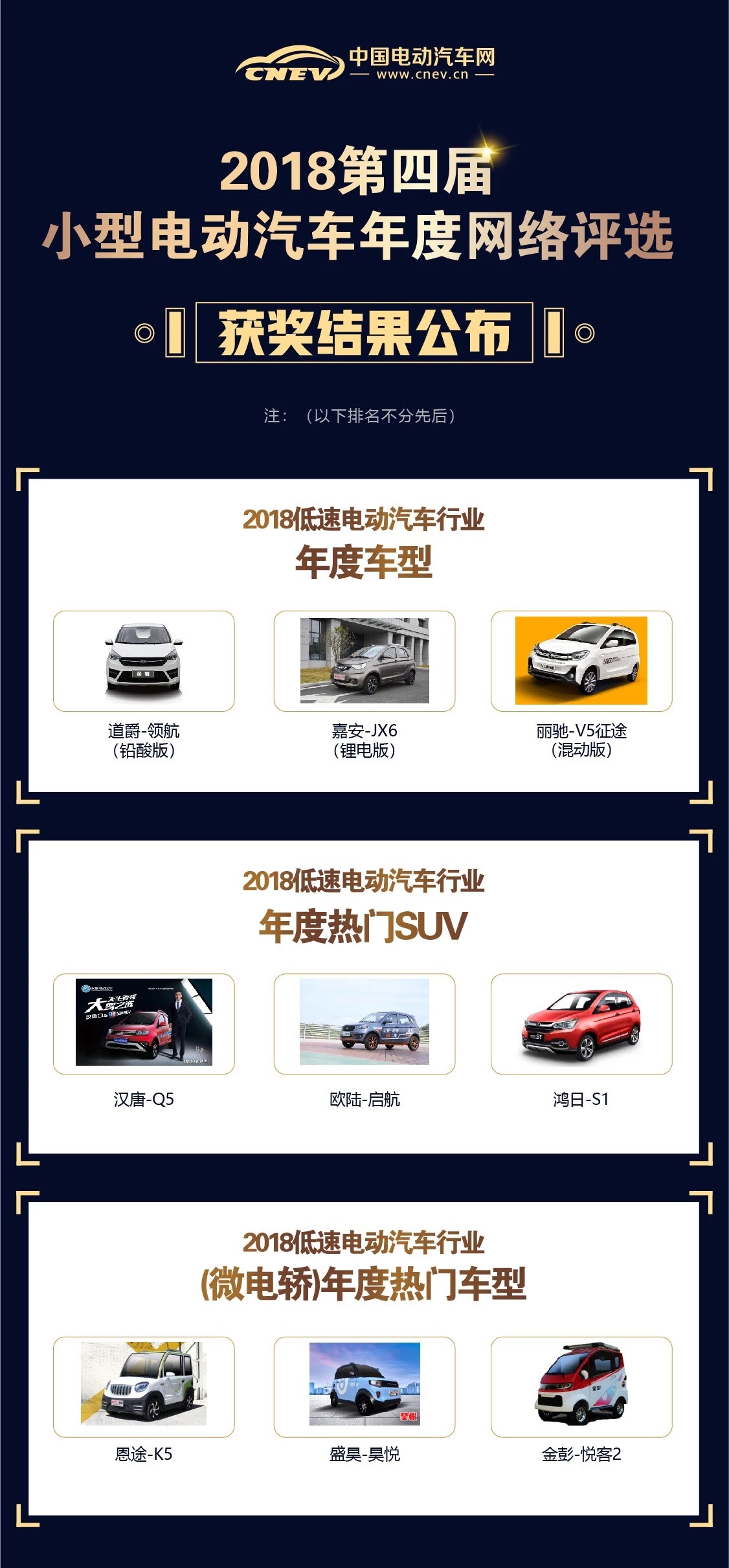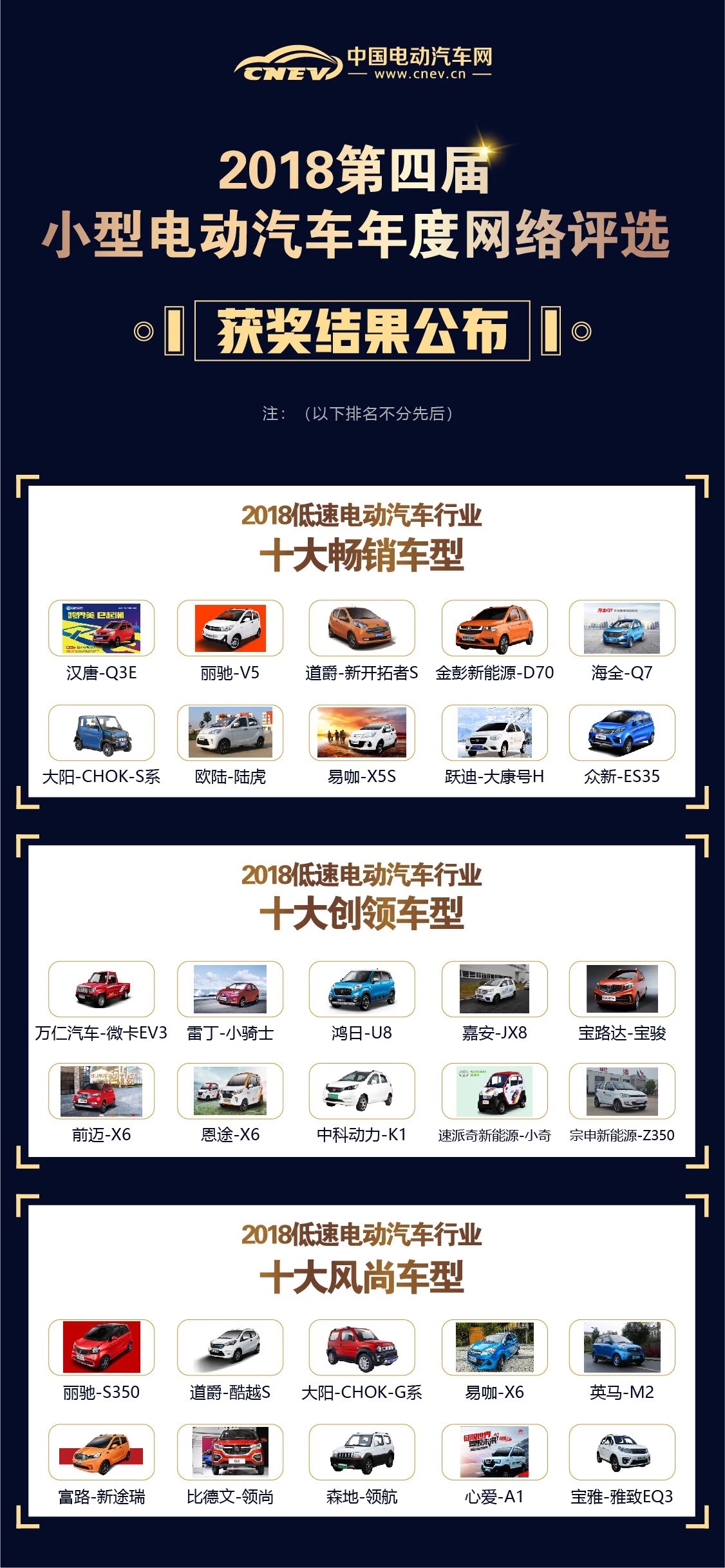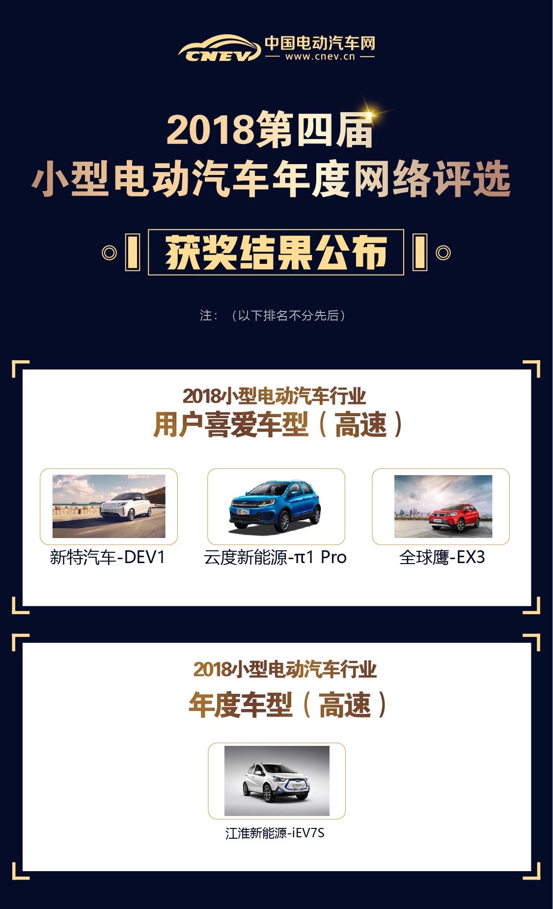 12月6日,備受關(guān)注的2018第四屆小型電動汽車年度網(wǎng)絡(luò)評選獲獎名單正式出爐!