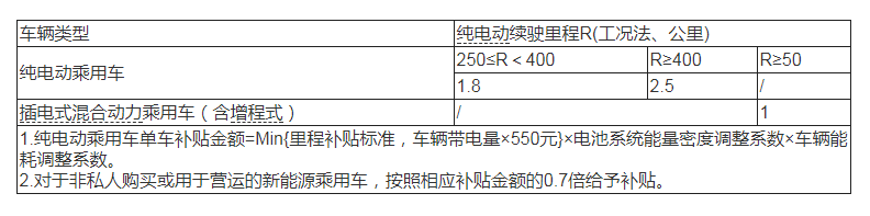 3. 純電動乘用車動力電池系統的質量能量密度不低于125Wh/kg,125(含)-140Wh/kg的車型按0.8倍補貼,140(含)-160Wh/kg的車型按0.9倍補貼,160Wh/kg及以上的車型按1倍補貼。